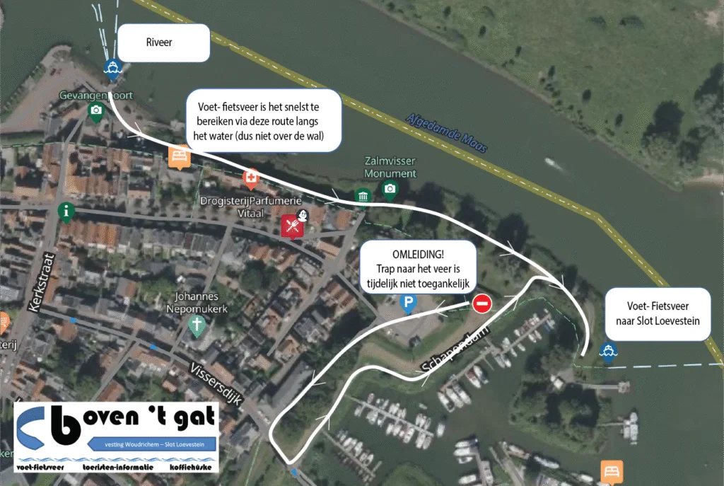@Gemeente Altena heeft geheel onverwacht de trap naar ons Voet- Fietsveer van Woudrichem naar Slot Loevestein afgesloten ivm de vervanging hiervan. Een omleiding ter plaatse wordt nog geregeld.