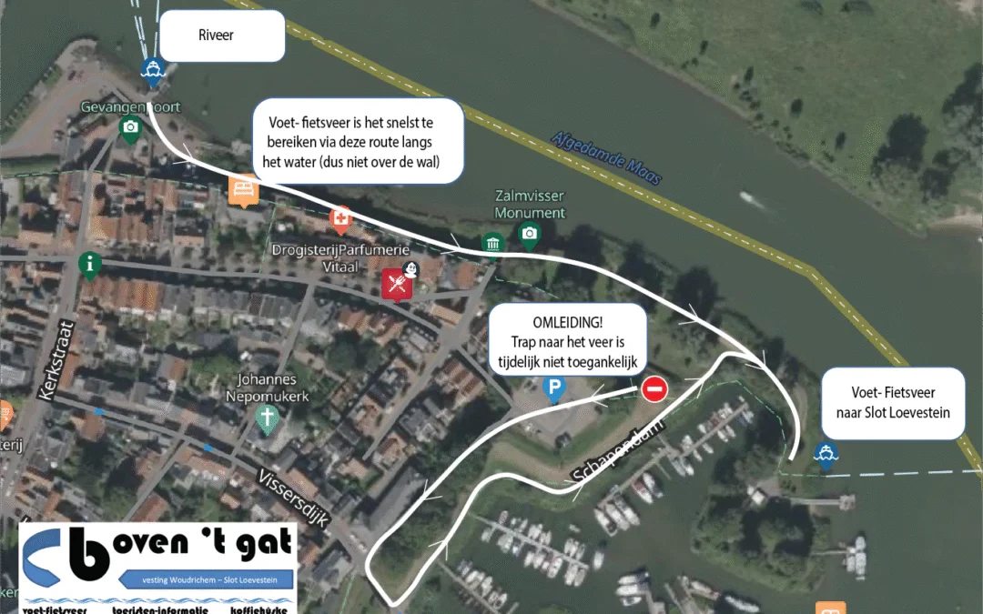 Hierbij de kortste weg naar ons veer vanaf @Riveer en vanaf de afgesloten trap.