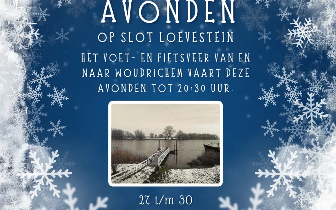 Beleef de sfeervolle Winteravonden op Slot Loevestein (27-30 dec, 10-20u)! Duizenden lichtjes, vuurtjes, livemuziek, vossenjacht voor kids en glühwein.